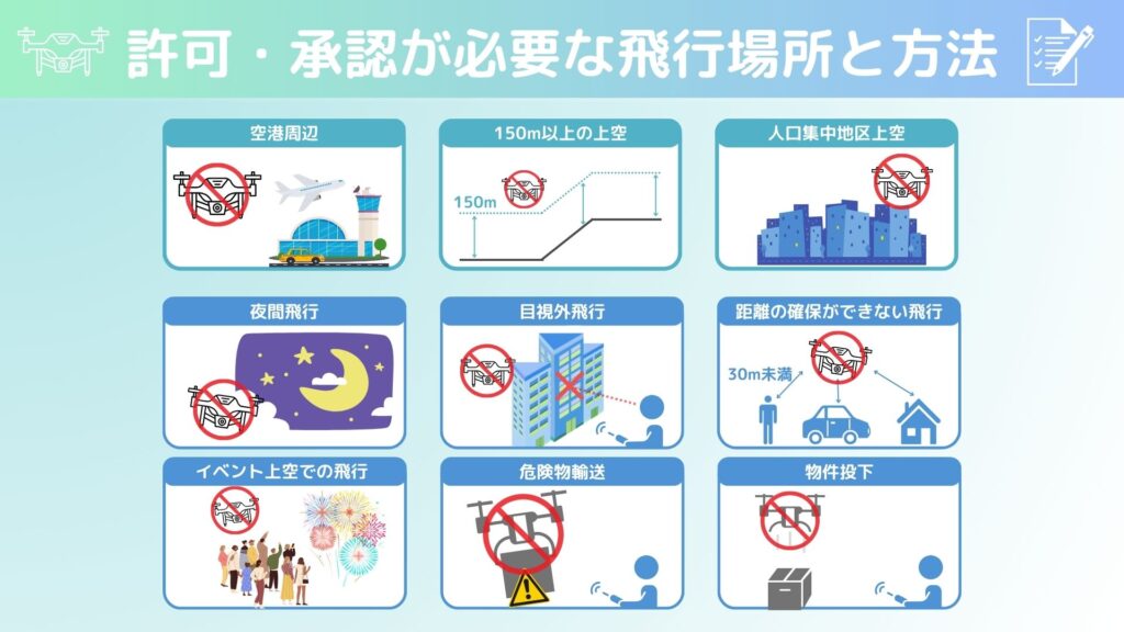 ①飛行許可が必要な飛行場所・方法