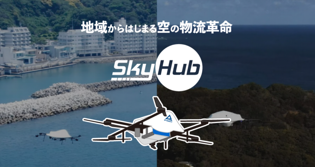 「SkyHub」は、車などの既存物流とドローン物流を組み合わせた物流プラットフォームで、ドローン配送のスタンダードな形として全国各地で導入が進められています。