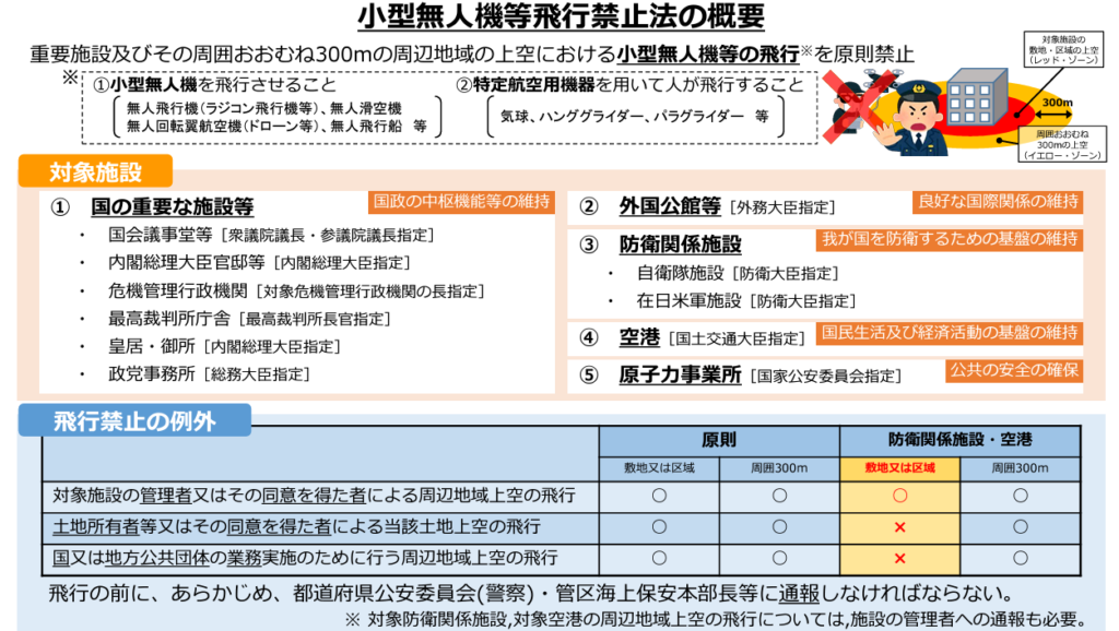 - 国の重要施設とその周辺300mの上空