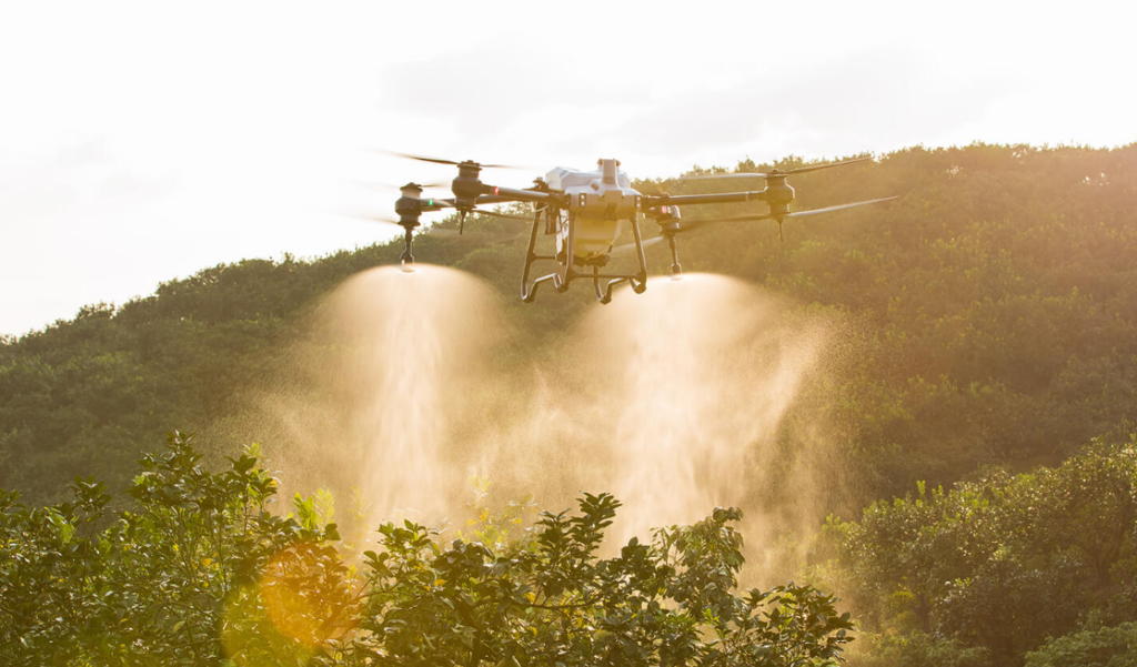 農薬散布機は、農薬を入れられるタンクをドローンに搭載し、散布機を通じて噴霧できる機器です。