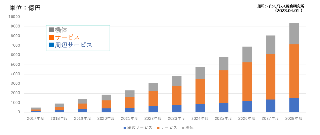 一方で、ドローン配送などの実証実験から実用化に向けたステップの分野については、まだまだ成長は鈍いようです。今後は実証段階のサービスが実用化することで、市場規模がさらに拡大していくでしょう。