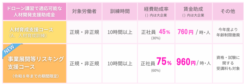 社内でドローン人材を育成する上で国家資格などの取得を計画する際には、必ず利用しておきたい制度といえるでしょう。