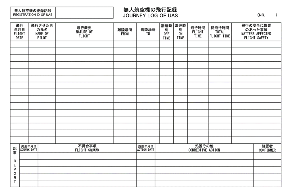 ドローンを飛行させた後は「飛行日誌」の作成が求められます。