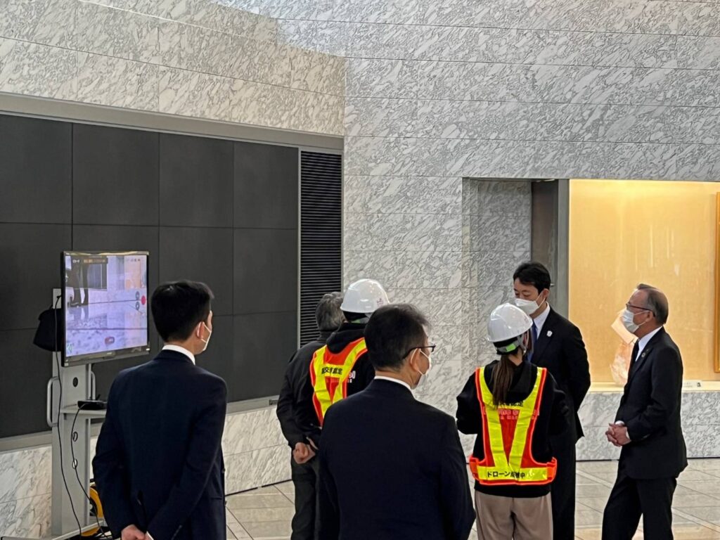ドローンスクール千葉幕張は、デモフライトを行うために参加し関係者の方々へ向けたドローンを飛行を行い、上昇・旋回といった動きや、ズームなどのカメラ機能についてご紹介しました。