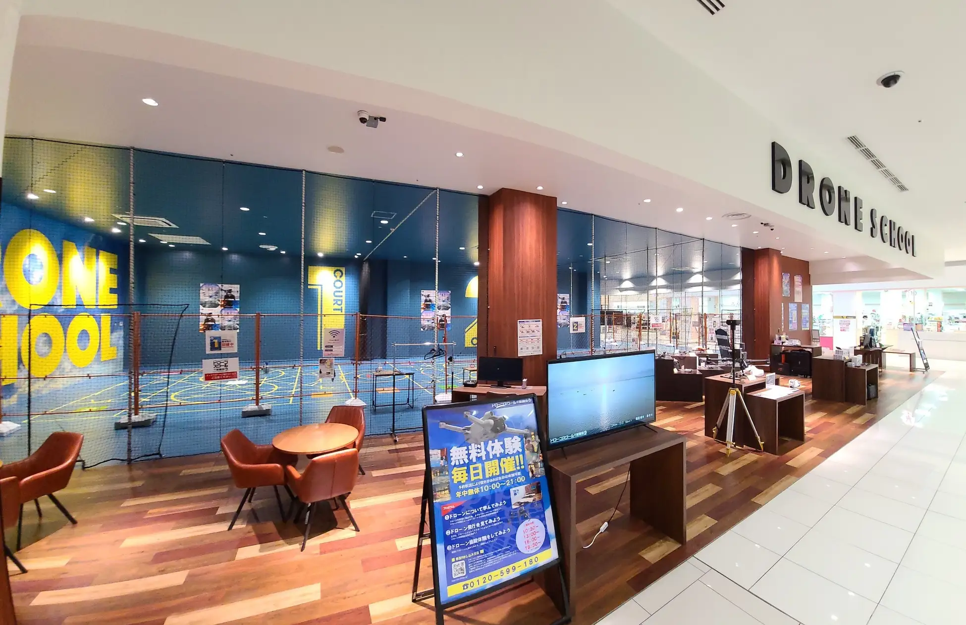 ドローンスクール千葉幕張は商業施設内を中心としたドローンスクールのため、他スクールでは開校していない夜の時間帯や、土日祝日も年中無休で毎日営業しています。