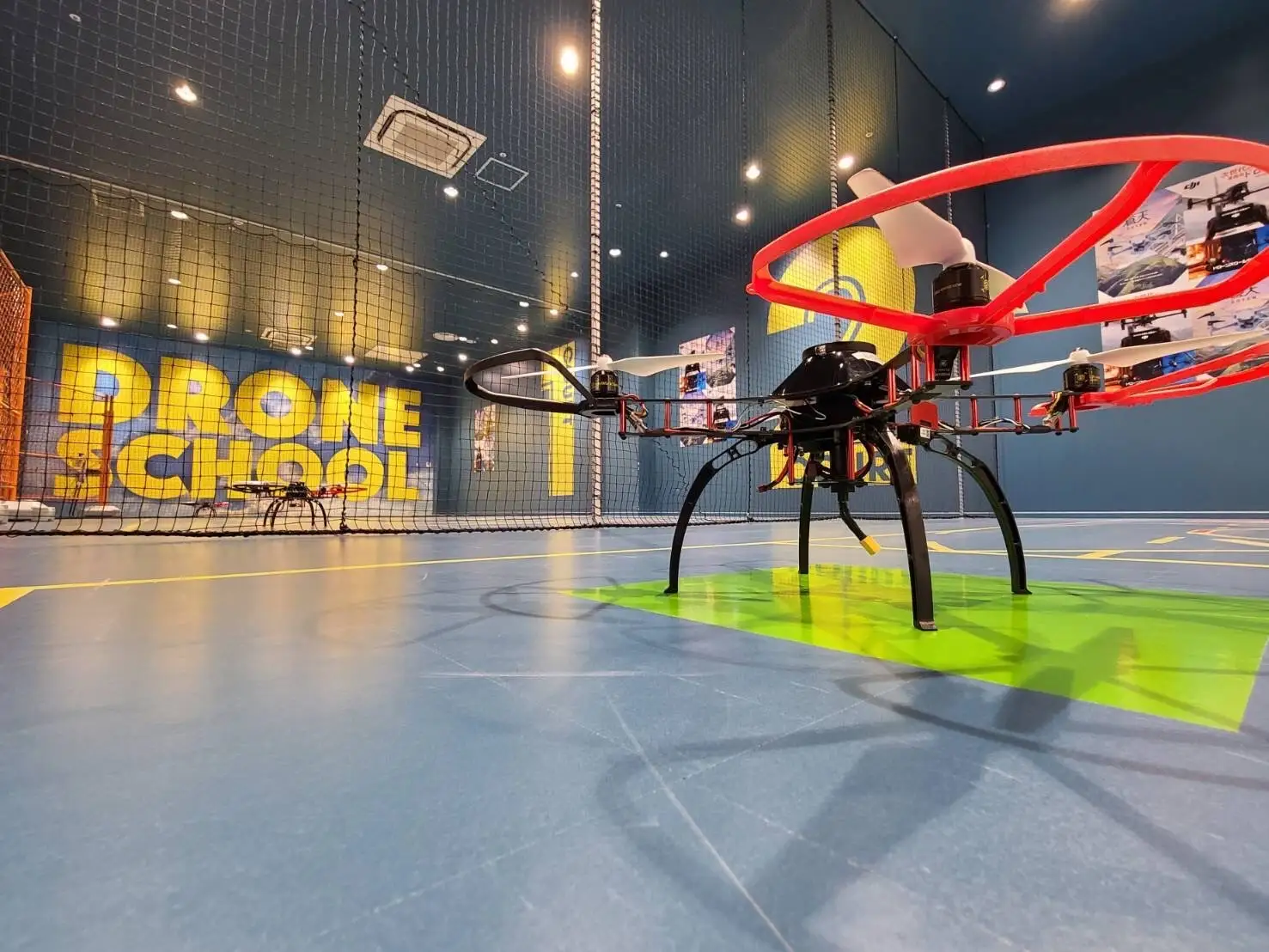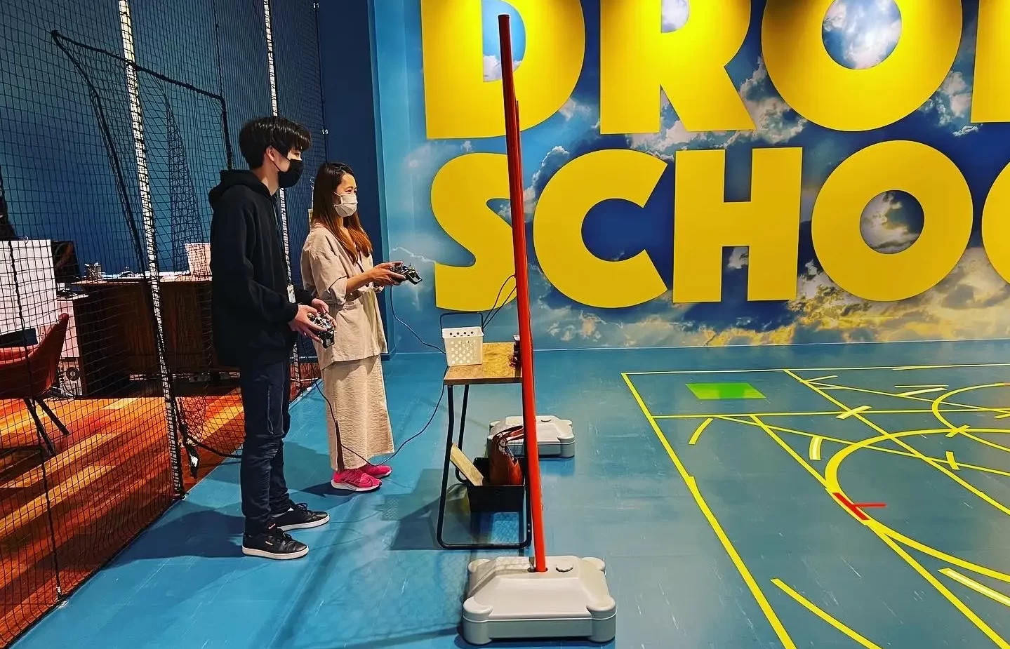練習コートは屋内に3面あり、天候に左右されず快適な環境で受講できます。さらに屋外コートもあるので、用途や目的に応じてドローンの練習ができます。