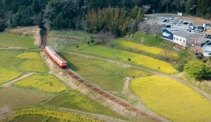 撮り鉄の方にはお馴染みの石神菜の花畑!