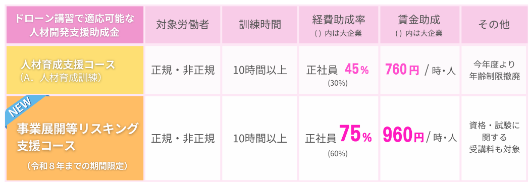 ドローンスクールの対象となる2つの助成金