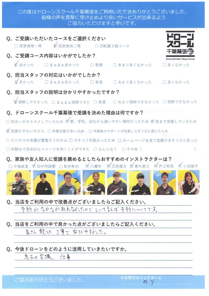 のり様 国家資格二等コース