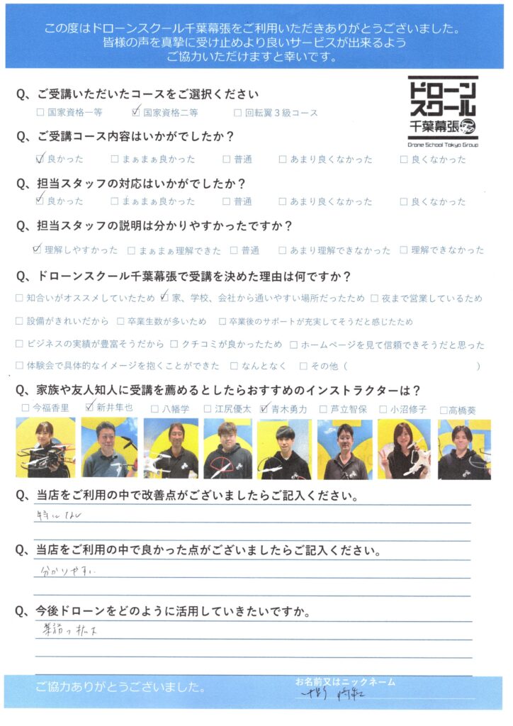 - ドローンスクール千葉幕張で受講を決めた理由は何ですか?