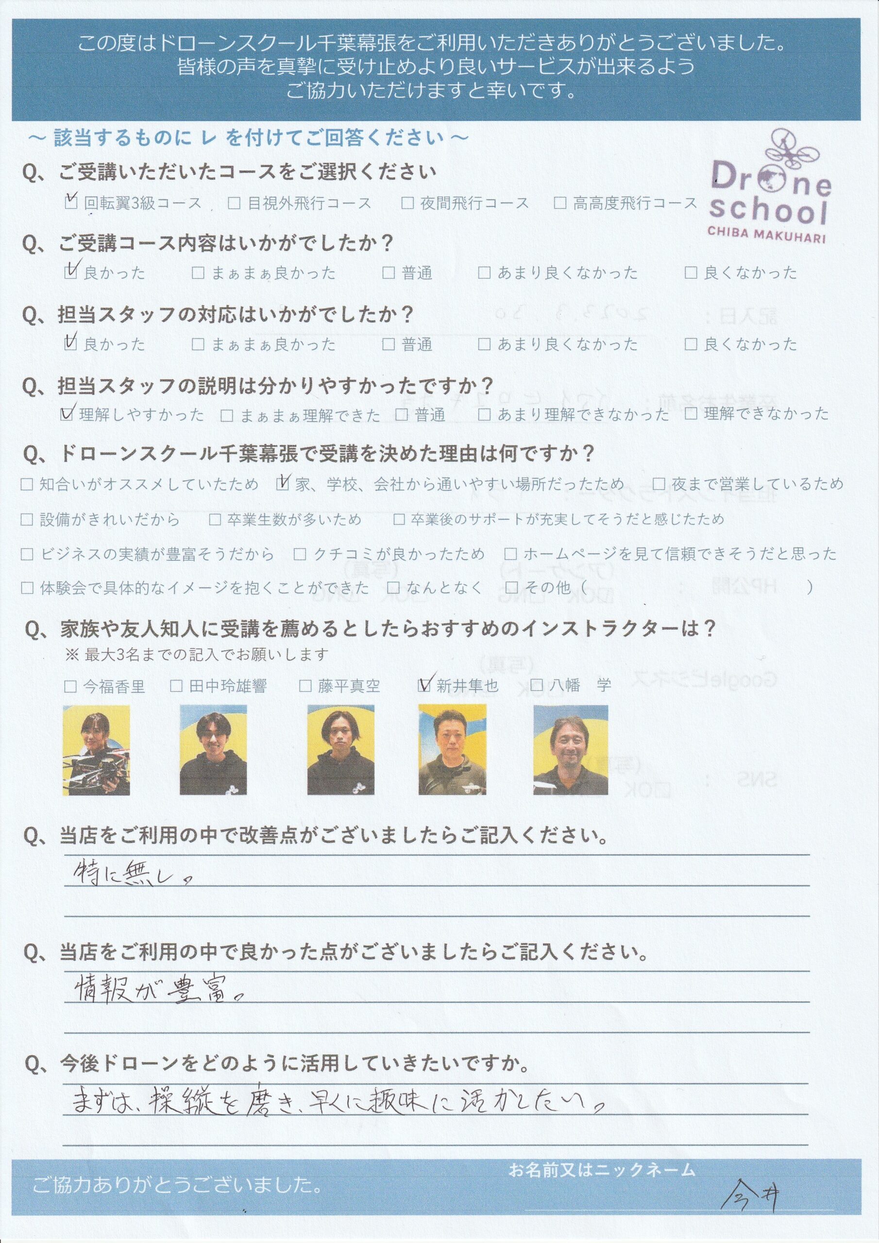 - ドローンスクール千葉幕張で受講を決めた理由は何ですか?