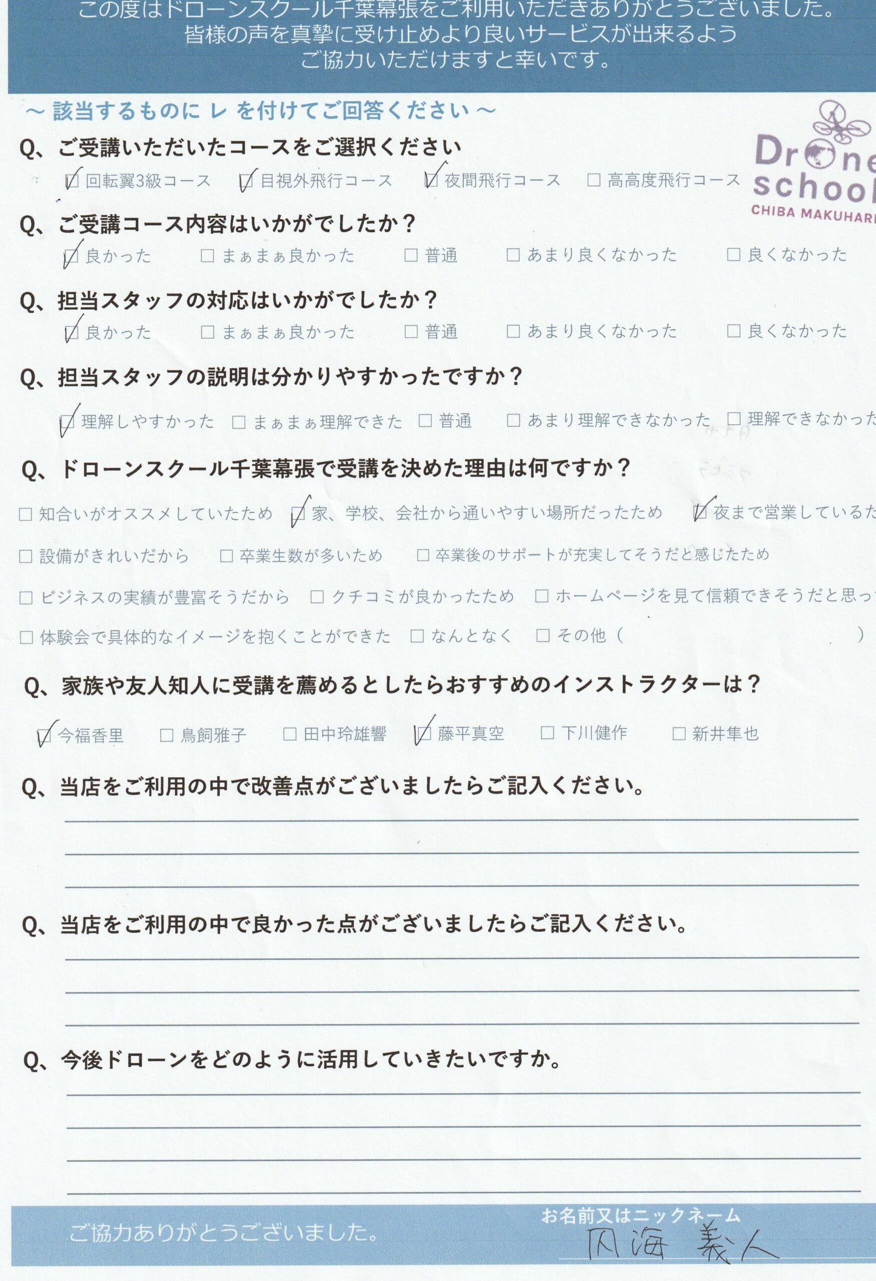 ドローンスクール千葉幕張で受講を決めた理由は何ですか?