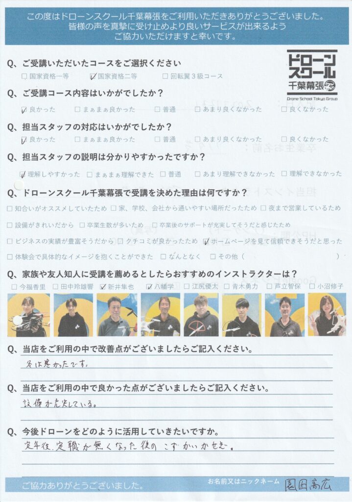 園田高広様 国家資格二等コース