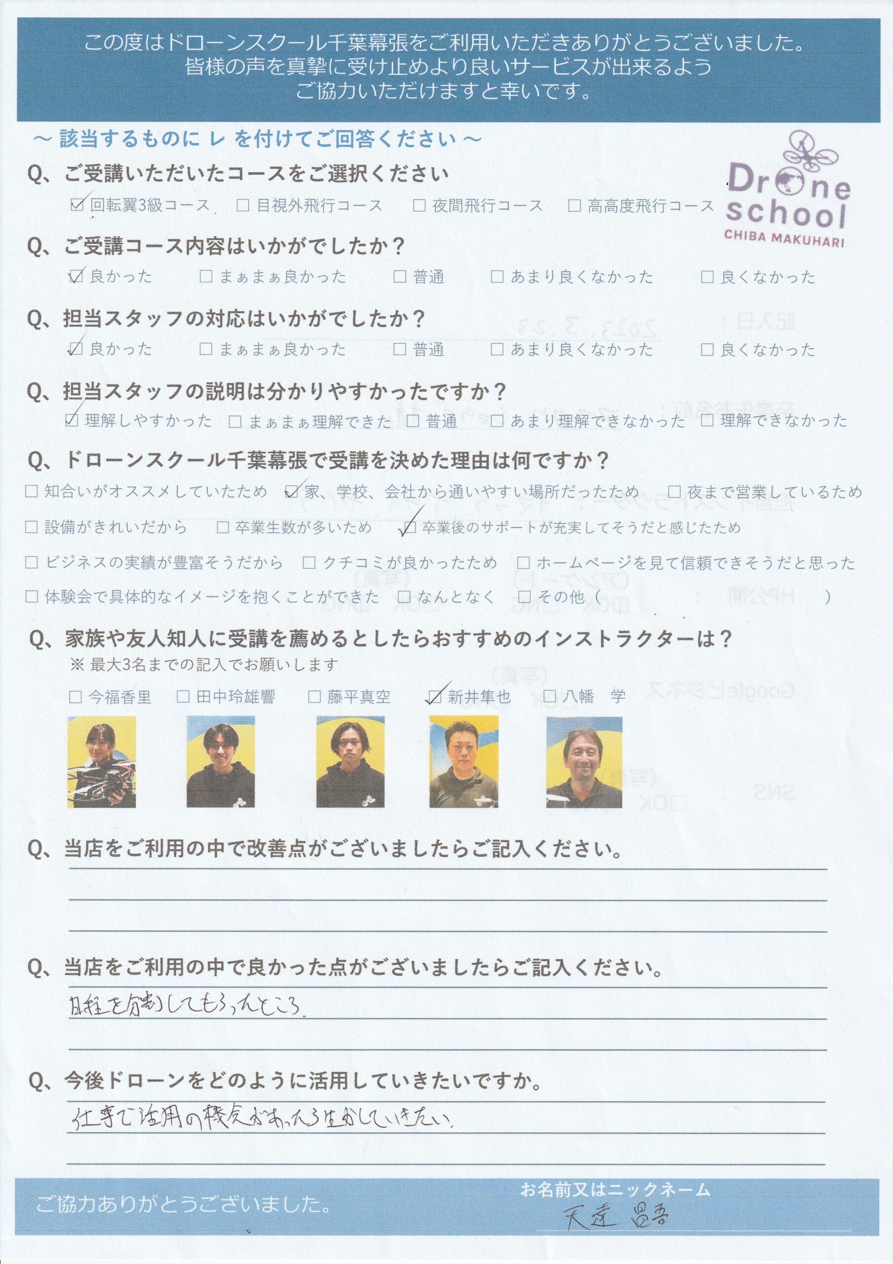 - ドローンスクール千葉幕張で受講を決めた理由は何ですか?