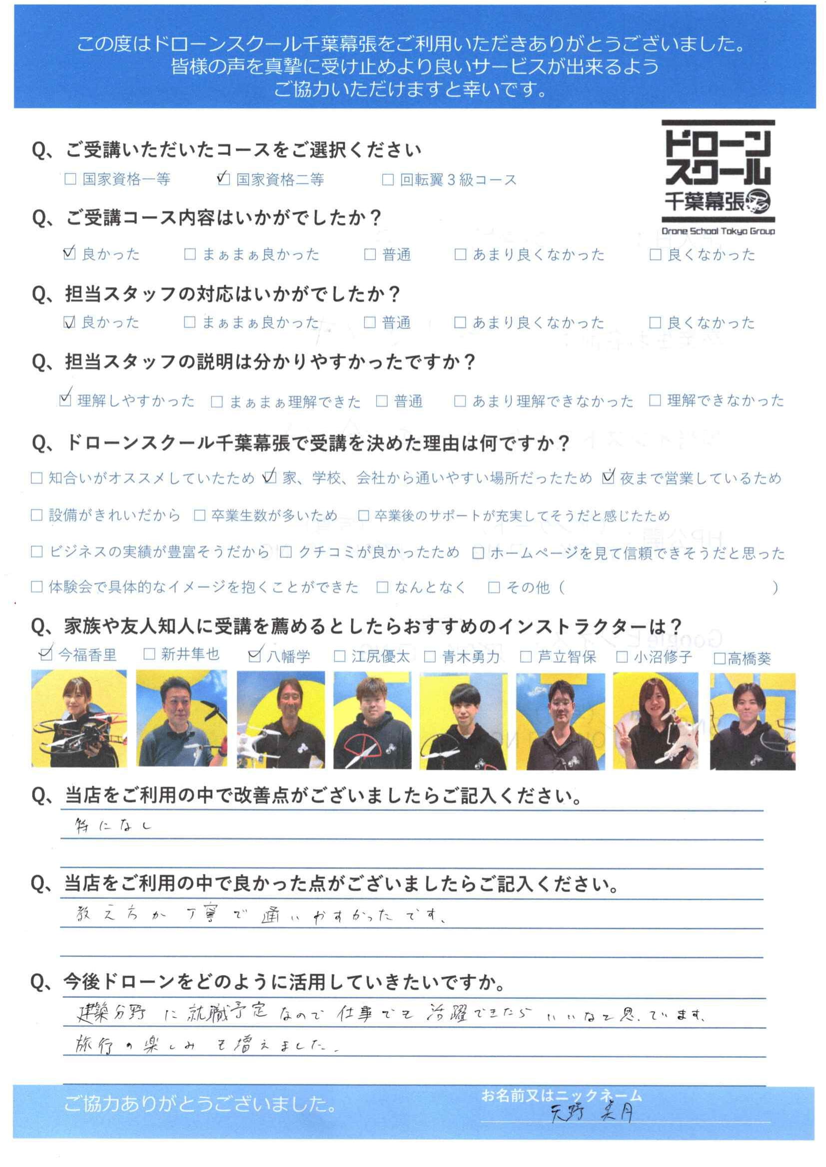 天野美月様国家資格二等コース
