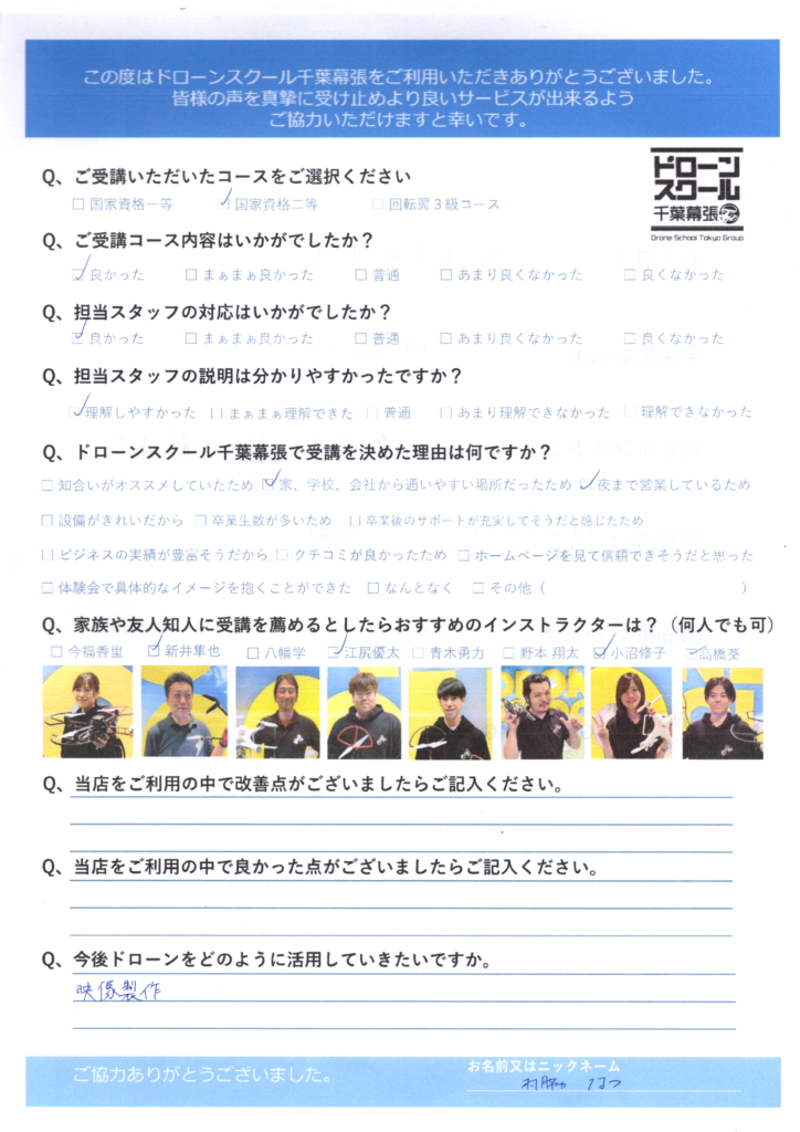 - ドローンスクール千葉幕張で受講を決めた理由は何ですか?