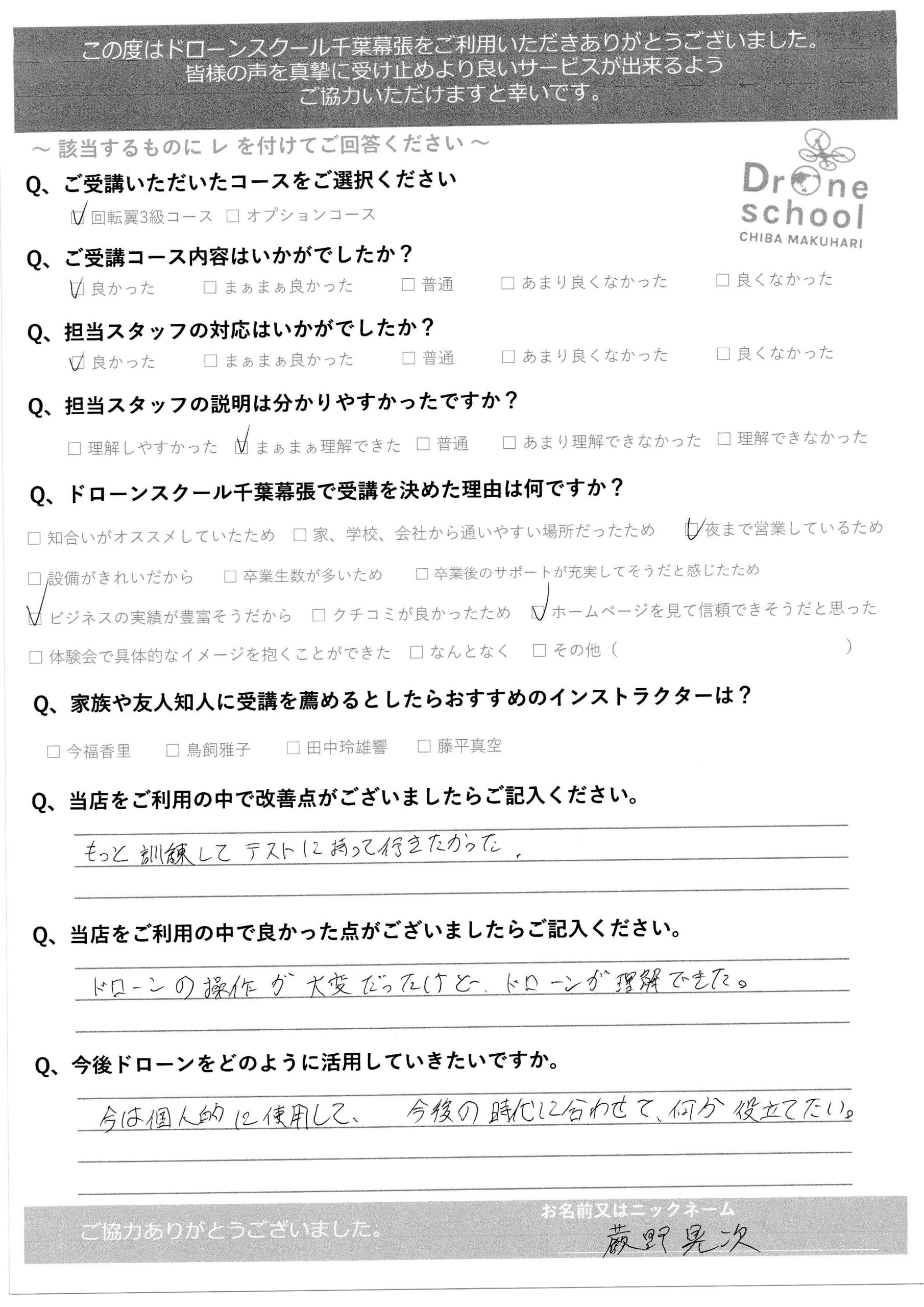 蕨野様 回転翼3級