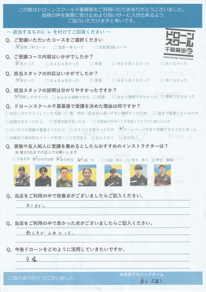 金子元樹様 国家資格二等コース