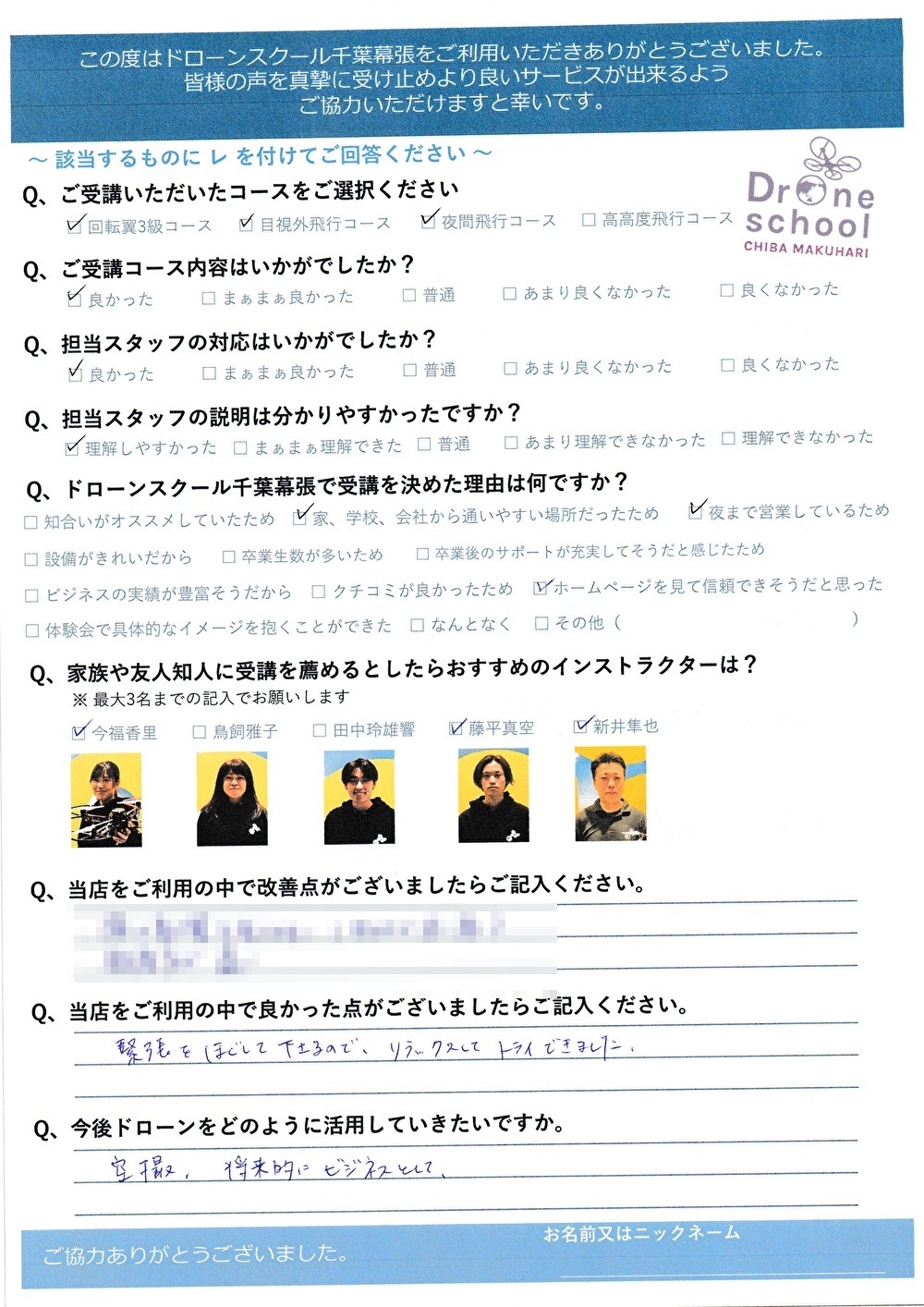 ドローンスクール千葉幕張で受講を決めた理由は何ですか?