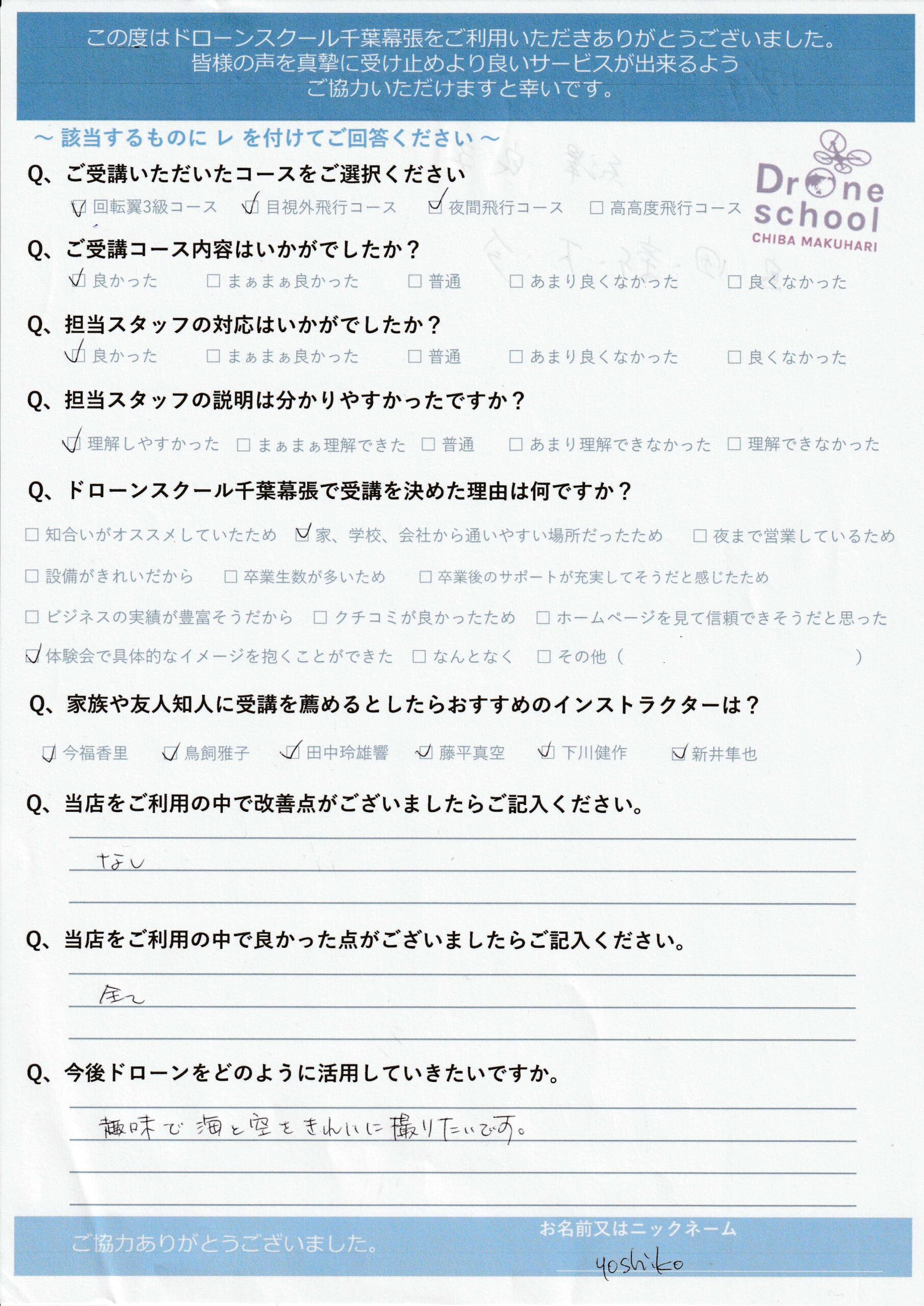 yoshiko様 回転翼3級 オプションコース